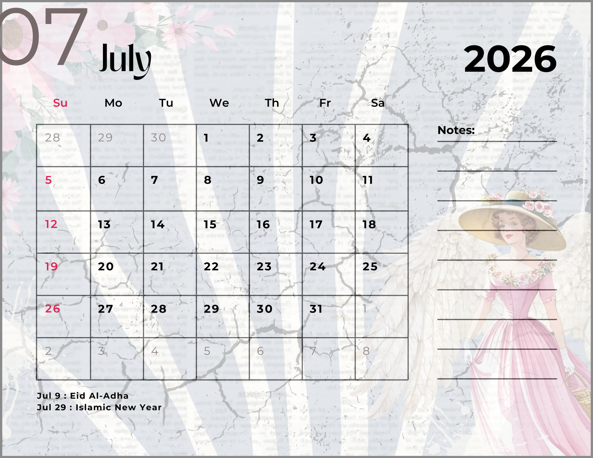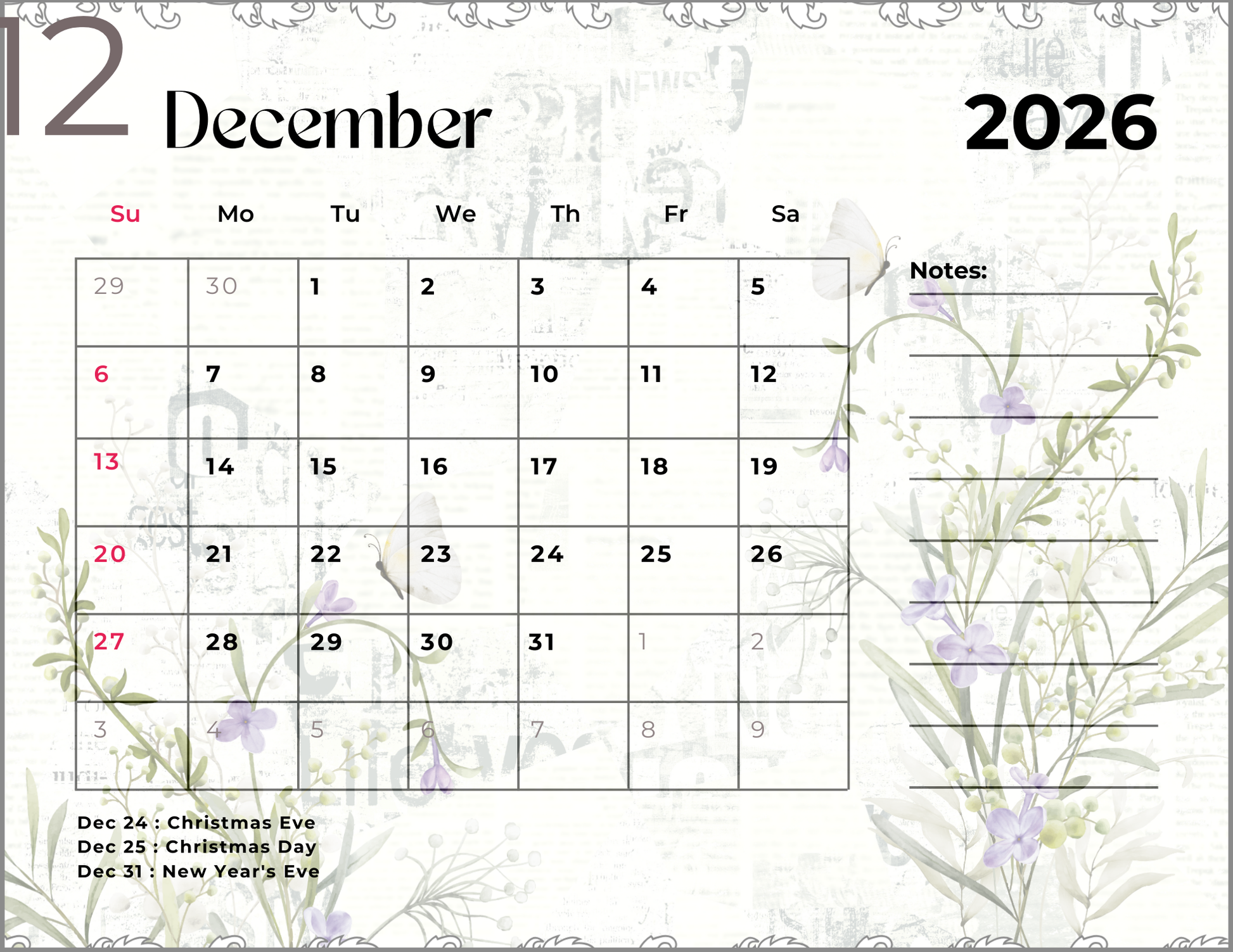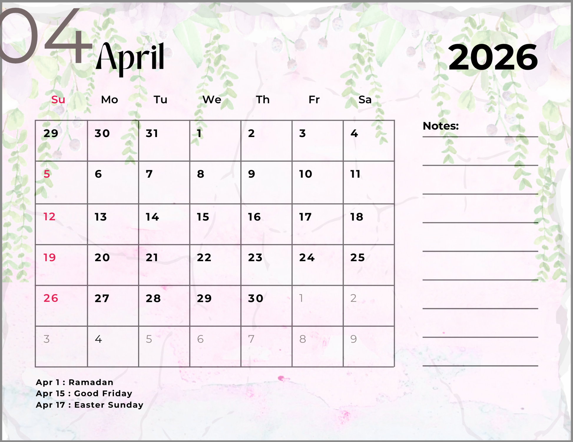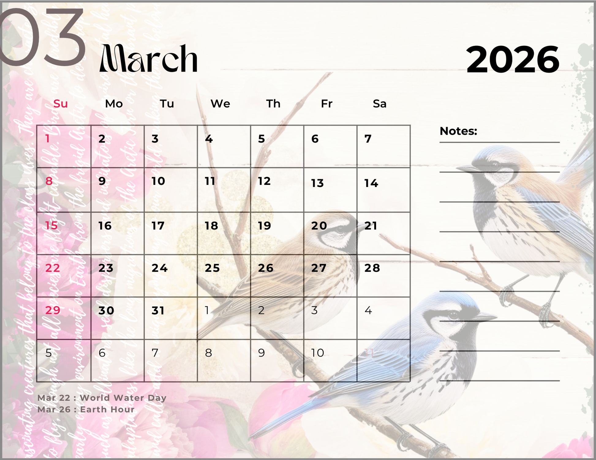 2026 Spring Garden Themed Calendar