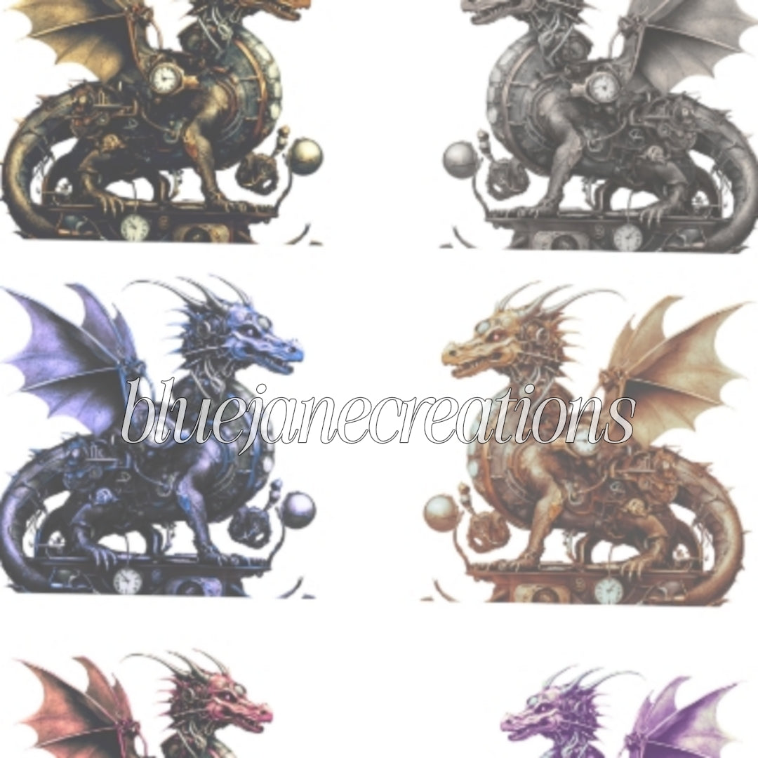 A colorful, downloadable paper collection featuring steampunk dragons, butterflies, and other miscellaneous images. This collection includes both background and cut-apart pages for your paper crafting projects.