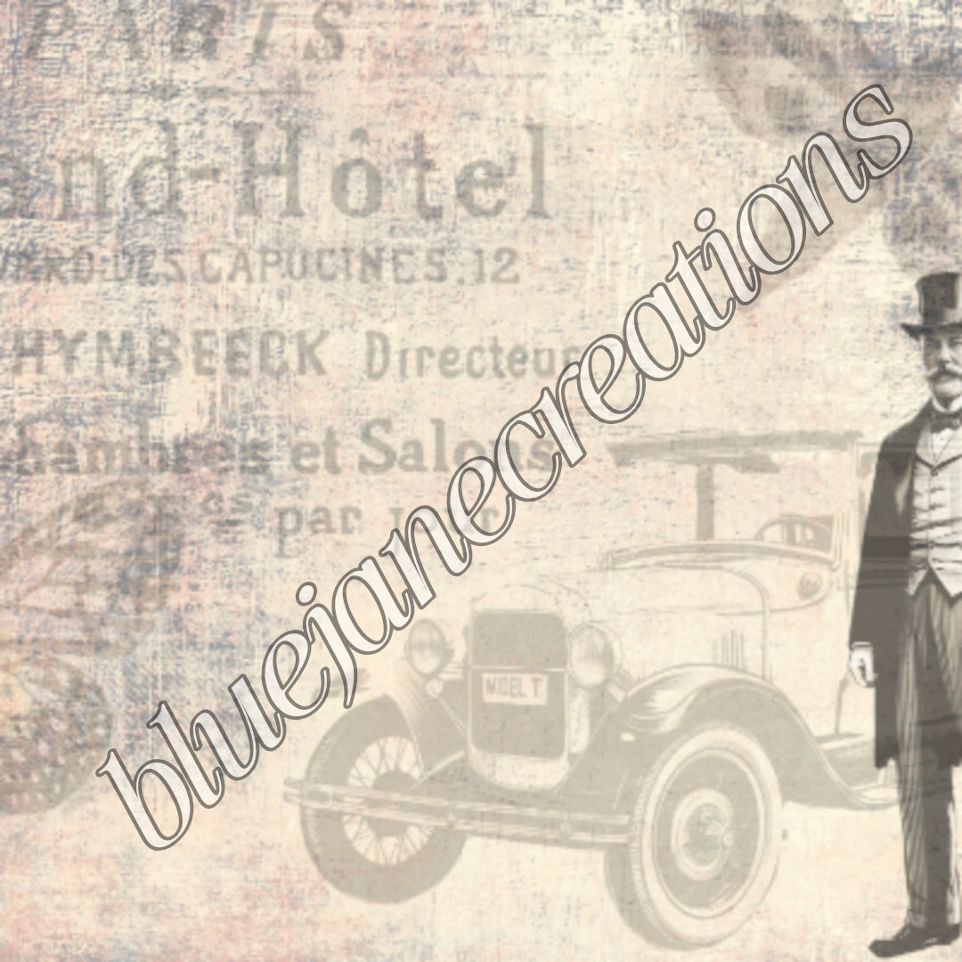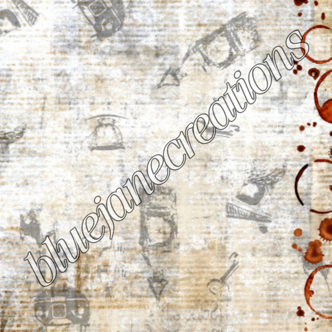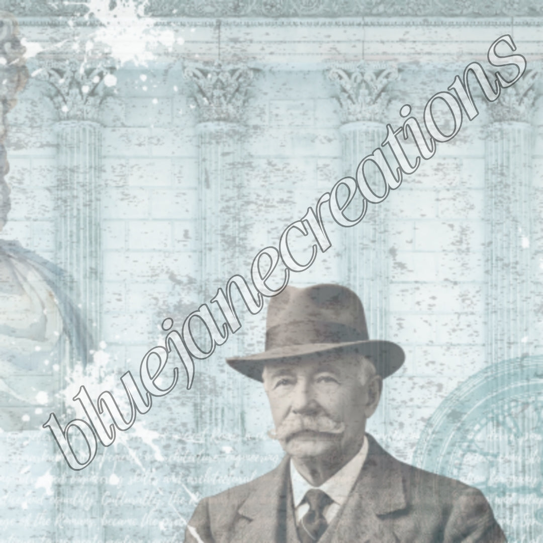 A masculine styled theme of papers and cut-apart pages in a variety of vintage images and eclectic backgrounds.